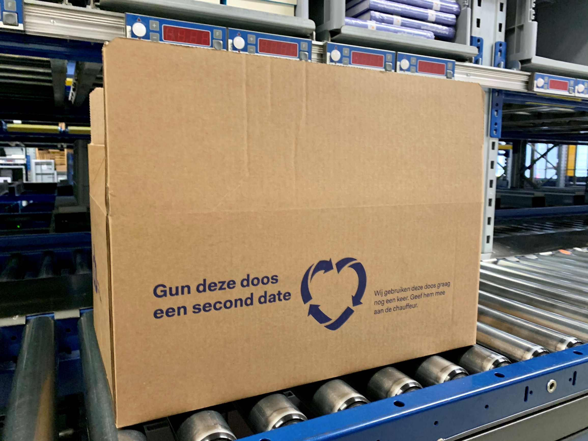 Vanaf juni vindt u bij uw bestelling steeds vaker een doos met daarop een knipoog naar deze duurzame gedachte.
