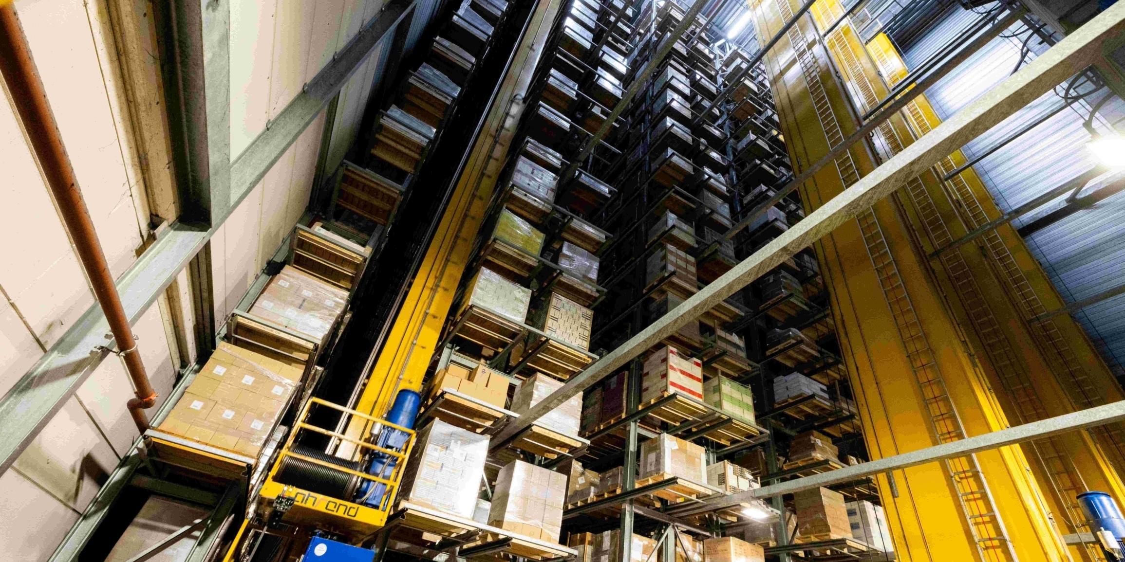 In ons hoogbouwmagazijn (met zo'n 23.000 palletlocaties) is een belangrijke onderhoudsoperatie aan de gang. Alle vijf de kranen (van 32 meter hoog) worden stuk voor stuk gerenoveerd. De mechanische en elektrische onderdelen worden vervangen en iedere kraan gaat over op een nieuwe aansturing.