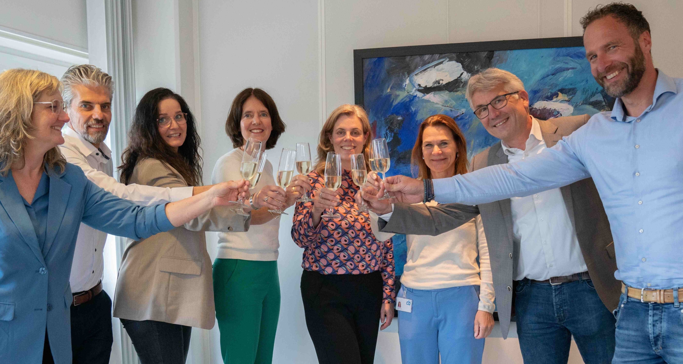 De Klett-groep ontwikkelt leermethodes en helpt zo leraren om goed onderwijs te geven. Het bedrijf is actief in 23 landen. CB’ers en Klett-groepers proosten op het nieuwe contract waarmee de band tussen beide partijen wordt onderstreept.